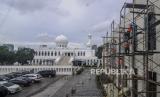 REPUBLIKA.CO.ID, JAKARTA -- Pengurus masjid terus merawat bangunan menara di sekitar masjid di kawasan Masjid Al-Azhar, Kebayoran Baru, Jakarta, Senin (8/3). Perawatan bangunan di lingkungan Masjid dan Universitas Al-Azhar itu dilakukan dalam rangka menyambut bulan suci Ramadhan.