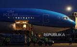 REPUBLIKA.CO.ID, Pekerja kargo menurunkan kontainer berisi vaksin COVID-19 AstraZeneca dari atas pesawat setibanya di Bandara Internasional Soekarno Hatta, Tangerang, Banten, Senin (8/3).