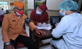 REPUBLIKA.CO.ID, DENPASAR -- Petugas melakukan pemeriksaan awal terhadap veteran yang akan menjalani vaksinasi COVID-19 di Denpasar, Bali, Selasa (9/3/2021).