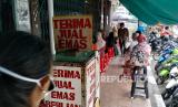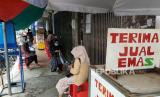 REPUBLIKA.CO.ID, BANDUNG -- Warga antre di depan sebuah toko emas di Jalan Otto Iskandardinata, Kota Bandung, Selasa (8/3).