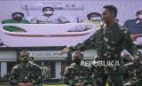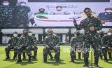 REPUBLIKA.CO.ID, JAKARTA -- Kepala Staf Angkatan Darat (KSAD ) Jenderal TNI Andika Perkasa (tengah) memperkenalkan Serda Aprilia Manganang via videotron di Markas Besar TNI Angkatan Darat (Mabes AD), Jakarta, Selasa (9/3). Aprilia Manganang diperlkenalkan kembali dengan jenis kelamin laki-laki usai melakukan corrective surgery oleh tim dokter TNI AD.