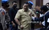 Terdakwa kasus suap penghapusan red notice Djoko Tjandra, Irjen Pol Napoleon Bonaparte usai menjalani sidang putusan di Pengadilan Tipikor, Jakarta, Rabu (10/3). Mantan Kepala Divisi Hubungan Internasional Polri itu divonis oleh Majelis Hakim 4 Tahun penjara ditambah denda Rp100 juta subsider 6 bulan kurungan.Prayogi/Republika. (FOTO : Prayogi/Republika.)