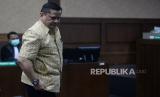 Terdakwa kasus suap penghapusan red notice Djoko Tjandra, Irjen Pol Napoleon Bonaparte menjalani sidang putusan di Pengadilan Tipikor, Jakarta, Rabu (10/3). Mantan Kepala Divisi Hubungan Internasional Polri itu divonis oleh Majelis Hakim 4 Tahun penjara ditambah denda Rp100 juta subsider 6 bulan kurungan. (FOTO : Prayogi/Republika.)