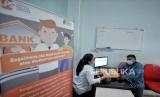 Petugas Lembaga Penjamin Simpanan (LPS) melayani nasabah di Bank Perkreditan Rakyat (BPR) Arthaprima Danajasa, Kota Bekasi, Jawa Barat, Rabu (10/3). Lembaga Penjamin Simpanan (LPS) mencatat jumlah rekening simpanan masyarakat mengalami kenaikan sebesar 16,4 persen menjadi 352.728.934 rekening pada Januari 2021 atau lebih besar dari dibandingkan periode Januari tahun lalu sebanyak 303.132.916 rekening. Republika/Thoudy Badai (FOTO : Republika/Thoudy Badai)
