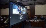 Majelis Hakim membacakan putusan Mantan Sekretaris Mahkamah Agung (MA) Nurhadi bersama Menantunya Rezky Herbiyono saat sidang pembacaan putusan secara virtual di Pengadilan Tipikor, Jakarta, Rabu (10/3). Majelis hakim menjatuhkan pidana penjara 6 tahun dan denda Rp500 juta subsider 3 bulan kurungan kepada terdakwa mantan Sekretaris Mahkamah Agung (MA) Nurhadi. Selain Nurhadi, Rizky Herbiyono yang juga terdakwa suap pengurusan perkara di MA dan gratifikasi divonis dengan 6 tahun penjara dan denda Rp500 juta subsider 3 bulan kurungan.Prayogi/Republika. (FOTO : Prayogi/Republika.)