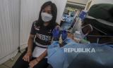 Atlet Bulu Tangkis Indonesia Apriyani Rahayu saat melakukan pendataan sebelum disuntik vaksin Covid-19 di Rumah Sakit Olahraga Nasional, Cibubur, Jakarta, Jumat (12/3). Kementerian Pemuda dan Olahraga bersama Kementerian Kesehatan melakukan vaksinasi Covid-19 dosis ke-2 kepada insan olahraga nasional dengan menyasar 820 orang secara bertahap. Republika/Putra M. Akbar (FOTO : Republika/Putra M. Akbar)