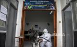 REPUBLIKA.CO.ID, BANDUNG -- Warga merapikan sejumlah fasilitas ruang isolasi darurat di Posko Terpadu Covid-19 RW 02, Kelurahan Sarijadi, Kecamatan Sukasari, Kota Bandung, Jumat (12/3).