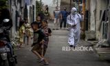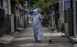 Warga menyemprotkan cairan disinfektan di permukiman warga, Kelurahan Sarijadi, Kecamatan Sukasari, Kota Bandung, Jumat (12/3). Warga RW 02 berinisiatif mengubah gedung serba guna menjadi posko terpadu covid-19 yang menyediakan ruang isolasi darurat, serta menyediakan sembako dan vitamin bagi warga yang terdampak Covid-19 dan secara rutin memberikan layanan penyemprotan disinfektan. Foto: Republika/Abdan Syakura (FOTO : REPUBLIKA/ABDAN SYAKURA)