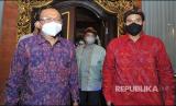Gubernur Bali Wayan Koster (kiri) menerima kunjungan Wakil Ketua UmumBidang Organisasi, Keanggotaan dan Pemberdayaan Daerah Kamar Dagang dan Industri (Kadin) Indonesia, Anindya Bakrie (kanan) , di Denpasar, Bali, Jumat (12/3). Bersama beberapa pengurus Kadinda . Kunjungan dilakukan untuk membahas rencana penyelenggaraan Munas Kadin di Bali. (FOTO : dok)