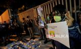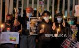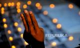 REPUBLIKA.CO.ID, JAKARTA -- Aktivis yang tergabung dalam Milk Tea Alliance Indonesia melakukan aksi solidaritas di depan Kantor ASEAN, Jakarta, Jumat (12/3).