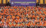 REPUBLIKA.CO.ID, RIAU -- Ratusan orang tersangka penyalahguna, kurir dan bandar narkoba dihadirkan ketika rilis hasil operasi narkoba di Mapolda Riau, Pekanbaru, Riau, Ahad (14/3/2021). Operasi anti-narkoba yang dilaksanakan selama 22 hari terhitung dari 18 Februari hingga 11 Maret 2021 ini berhasil mengamankan sebanyak 463 orang tersangka dengan barang bukti sabu-sabu sebanyak 45,46 kg, ganja 207,47 gram, ekstasi 5.108 butir dan uang tunai Rp 223.240.000.