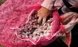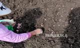 Petani mengambil bibit bawang merah untuk ditaman di lokasi pertanian Kretek, Bantul, Yogyakarta, Ahad (14/3). Pertengahan Maret petani mulai menanam bawang merah. Beralih dari tanaman padi atau cabai. Bibit bawang merah berasal dari Kulonprogo atau Bima, NTT. Harga bibit sekarang di kisaran Rp 40 ribu hingga Rp 50 ribu perkilogram. Masa panen bawang merah sekitar 60 hari. (FOTO : Wihdan Hidayat / Republika)