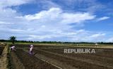 Petani menanam bibit bawang merah di lokasi pertanian Kretek, Bantul, Yogyakarta, Ahad (14/3). Pertengahan Maret petani mulai menanam bawang merah. Beralih dari tanaman padi atau cabai. Bibit bawang merah berasal dari Kulonprogo atau Bima, NTT. Harga bibit sekarang di kisaran Rp 40 ribu hingga Rp 50 ribu perkilogram. Masa panen bawang merah sekitar 60 hari. (FOTO : Wihdan Hidayat / Republika)