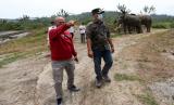 Wakil Bupati Bener Meriah Dailami (kanan) didampingi Kepala Seksi Konservasi Wilayah 1 Balai Konservasi Sumber Daya Alam (BKSDA) Aceh Kamaruzzaman (kiri) mengunjungi kawasan konflik gajah liar dengan warga di Desa Negeri Antara, Bener Meriah, Aceh, Ahad (14/3/2021). Tim BKSDA Aceh melakukan penggiringan kawanan gajah liar berjumlah lima ekor yang sejak sebulan terakhir memasuki pemukiman dan perkebunan warga. (FOTO : ANTARA/Irwansyah Putra)
