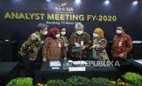 REPUBLIKA.CO.ID, BANDUNG -- Direktur Utama Bank BJB Yuddy Renaldi bersama para direksi menghadiri acara Analyst Meeting FY-2020 di Menara Bank BJB Jalan Naripan, Kota Bandung, Senin (15/3).