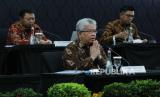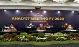 Direktur Utama Bank BJB Yuddy Renaldi bersama para direksi menggelar Analyst Meeting FY-2020 di Menara Bank BJB Jalan Naripan, Kota Bandung, Senin (15/3). Bank BJB berhasil mencatat pencapaian bisnis positif sepanjang tahun 2020 di tengah krisis pandemi Covid-19 dengan pertumbuhan yang terjaga baik. Tren positif ini tercermin melalui sejumlah indikator kunci kinerja. Secara konsolidasi perolehan laba Bank BJB mencapai Rp1,7 triliun atau tumbuh 8% secara year-on-year (y-o-y). (FOTO : Edi Yusuf/Republika)