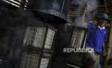 Pekerja memproduksi keripik kaca dengan cara tradisional di Desa Warnasigra, Kabupaten Ciamis, Jawa Barat, Senin (15/3/2021). Perajin mampu memproduksi keripik kaca lima kuintal per hari dengan harga jual Rp20 ribu per kilogram, namun kesulitan bahan dasar berupa singkong hingga terpaksa mendatangkan bahan baku tersebut dari Lampung. (FOTO : ANTARA/Adeng Bustomi)