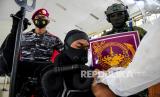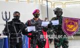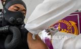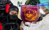 REPUBLIKA.CO.ID, JAKARTA -- Prajurit Korps Marinir TNI AL dengan mengenakan kostum menyerupai superhero melakukan simulasi vaksinasi COVID-19 untuk sarana edukasi di Kesatrian Marinir Hartono, Cilandak, di Jakarta Selatan, Senin (15/3/2021). Korps Marinir TNI AL melakukan edukasi vaksinasi dan protokol kesehatan untuk mencegah penyebaran COVID-19.