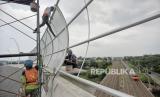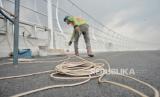 REPUBLIKA.CO.ID, JAKARTA -- Pekerja menyelesaikan proses pembangunanan jalan layang Cakung di Jakarta Timur, Selasa (16/3). Progres pembangunan flyover Cakung dengan panjang 760 meter dan lebar 18 meter tersebut telah mencapai 96,44 persen, dan rencana akan segera dilakukan uji coba pada bulan Maret.