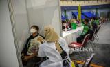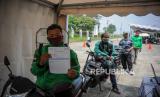 REPUBLIKA.CO.ID, BANDUNG -- Pengemudi ojek daring mengkuti program vaksinasi COVID-19 drive thru di Sport Center Arcamanik, Bandung, Jawa Barat, Selasa (16/3). Dinas Kesehatan Kota Bandung bekerjasama dengan Grab memberikan vaksin COVID-19 secara gratis kepada pengemudi ojek daring guna memberikan rasa nyaman kepada penumpang yang akan menggunakan moda transportasi daring. ANTARA FOTO/Raisan Al Farisi/rwa.