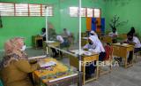 REPUBLIKA.CO.ID, DUMAI -- Suasana kegiatan belajar mengajar di Sekolah Menengah Pertama (SMP) Negeri 13 Bagan Besar Dumai pada masa pandemi COVID-19 di Riau, Selasa (16/3). Pemkot Dumai mulai membuka sekolah-sekolah untuk kegiatan belajar mengajar tatap muka di masa pandemi COVID-19 dengan menerapkan protokol kesehatan.