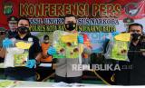 REPUBLIKA.CO.ID, KEDIRI -- Polisi merilis pengungkapan kasus peredaran narkoba Februari-Maret 2021 di Polresta Kediri, Jawa Timur, Selasa (16/3). Polresta Kediri berhasil mengamankan 41 tersangka dari 30 kasus narkoba dengan barang bukti terbanyak berupa 142.592 butir pil double L atau Triheksifenidil Hcl.