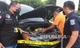 Petugas menunjukan cara pelaku menyelundupkan sabu seberat 6,7 kg saat rilis pengungkapan penyelundupan sabu jaringan antar provinsi, di Mapolres Bandara Soetta, Tangerang, Banten, Selasa (16/3). Pengungkapan ini berawal dari adanya informasi rencana transaksi penjualan narkoba di Terminal 2 Bandara Soekarno Hatta, para tersangka menyelundupkan sabu tersebut diletakan dalam kap mesin mobil. (FOTO : Antara/Muhammad Iqbal)