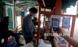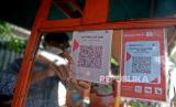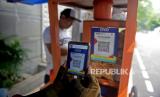 REPUBLIKA.CO.ID, JAKARTA -- Penjual makanan menempelkan barcode transaksi pembayaran melalui uang elektronik atau non tunai di lapak kaki lima di Kawasan Menteng, Jakarta, Rabu (17/3).