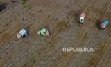 Sejumlah petani menamam padi di sawah di Kecamataan Uepai, Konawe, Sulawesi Tenggara, Rabu (17/3/2021). Kementerian Pertanian menargetkan produksi beras pada musim tanam yang berlangsung pada Januari hingga Juni 2021 menghasilkan 20 juta ton beras yang tersebar di seluruh provinsi di Indonesia. (FOTO : ANTARA/Jojon)