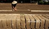Pekerja menjemur batu bata di Kecamatan Bontomarannu, Kabupaten Gowa, Sulawesi Selatan, Rabu (17/3/2021). Pekerja setempat mengatakan produksi batu bata di daerah itu terkendala proses pengeringan akibat minimnya cahaya matahari saat musim hujan sehingga berdampak pada penurunan jumlah produksi hingga dua kali lipat. (FOTO : ANTARAArnas Padda)
