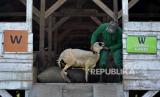 Peternak memeriksa domba Garut di Balai Pengembangan Pembibitan Ternak Domba dan Kambing (BPPTDK) Margawati, Kabupaten Garut, Jawa Barat, Rabu (17/3/2021). Balai pembibitan yang didirikan pemerintah Jawa Barat Tahun 1975 bertujuan untuk mempertahankan genetika serta peningkatan populasi domba yang hingga Maret 2021 sebanyak 1.700 ekor domba Garut. (FOTO : ANTARA/Candra Yanuarsyah)