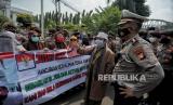 REPUBLIKA.CO.ID, JAKARTA -- Pengadilan Negeri Jakarta Timur (PN Jaktim) kembali menggelar sidang kasus tes usap (swab test) di RS Ummi Bogor, dengan tersangka Habib Rizieq Shihab. Petugas kepolisian mengingatkan massa yang hadir di depan PN Jaktim untuk menerapkan protokol kesehatan.