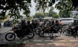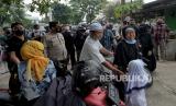 Petugas kepolisian membubarkan massa simpatisan Rizieq Shihab memadati area Pengadilan Negeri Jakarta Timur saat sidang lanjutan kasus pelanggaran protokol kesehatan dengan terdakwa Rizieq Shihab di PN Jakarta Timur, Jumat (19/3). Sidang tersebut beragendakan pembacaan dakwaan terhadap Rizieq Shihab atas kasus pelanggaran protokol kesehatan. (FOTO : Republika/Thoudy Badai)