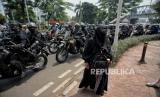 Simpatisan Rizieq Shihab memadati area Pengadilan Negeri Jakarta Timur saat sidang lanjutan kasus pelanggaran protokol kesehatan dengan terdakwa Rizieq Shihab di PN Jakarta Timur, Jumat (19/3). Sidang tersebut beragendakan pembacaan dakwaan terhadap Rizieq Shihab atas kasus pelanggaran protokol kesehatan. (FOTO : Republika/Thoudy Badai)