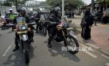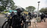 Petugas kepolisian berjaga di area Pengadilan Negeri Jakarta Timur saat sidang lanjutan kasus pelanggaran protokol kesehatan dengan terdakwa Rizieq Shihab di PN Jakarta Timur, Jumat (19/3). Sidang tersebut beragendakan pembacaan dakwaan terhadap Rizieq Shihab atas kasus pelanggaran protokol kesehatan. (FOTO : Republika/Thoudy Badai)