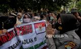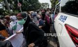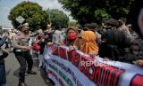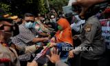 Petugas kepolisian membubarkan massa simpatisan Rizieq Shihab memadati area Pengadilan Negeri Jakarta Timur saat sidang lanjutan kasus pelanggaran protokol kesehatan dengan terdakwa Rizieq Shihab di PN Jakarta Timur, Jumat (19/3). Sidang tersebut beragendakan pembacaan dakwaan terhadap Rizieq Shihab atas kasus pelanggaran protokol kesehatan. (FOTO : Republika/Thoudy Badai)