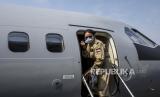 Test Pilot In Command dan Flight Instructor Capt Esther Gayatri masuk ke dalam Pesawat terbang CN235-220 Maritime Patrol Aircraft (MPA) sebelum lepas landas pada acara Ferry Flight di Hanggar Fixed Wing PTDI, Kota Bandung, Jumat (19/3). (FOTO : REPUBLIKA/ABDAN SYAKURA)