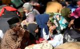 Warga makan bersama usai berdoa saat nyadran di Dusun Warangan, Pakis, Magelang, Jawa Tengah, Jumat (19/3). Tradisi nyadran dilakukan oleh warga di lereng Gunung Merbabu sebulan sebelum Ramadhan. Saat nyadran warga membersihkan makam, berdoa, dan makan bersama di lokasi sekitar makam. Tahun ini nyadran boleh dilakukan di makam, berbeda dengan tahun lalu tradisi ini hanya dilakukan di rumah imbas awal pandemi Covid-19. (FOTO : Wihdan Hidayat / Republika)