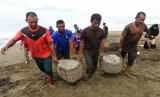 REPUBLIKA.CO.ID, ACEH BARAT -- Sejumlah nelayan tradisional mengumpulkan ikan seusai proses penarikan pukat darat tradisional di perairan pantai Desa Suak Ribe, Kecamatan Johan Pahlawan, Aceh Barat, Aceh, Sabtu (20/3/2021). Sejak tiga hari terakhir tangkapan nelayan pukat darat mulai melimpah seiring membaiknya cuaca di perairan barat selatan Aceh.