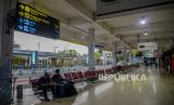 Sejumlah calon penumpang berada di Bandara Halim Perdanakusma, Jakarta Timur, Sabtu (20/3). Sebanyak 13 penerbangan di Bandara Halim Perdanakusuma terpaksa dialihkan ke Bandara Internasional Soekarno Hatta imbas dari insiden tergelincirnya pesawat Trigana Air Boeing 737-500 di Bandara Halim Perdanakusuma. (FOTO : Republika/Putra M. Akbar)