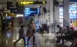 Sejumlah calon penumpang berada di Bandara Halim Perdanakusma, Jakarta Timur, Sabtu (20/3). (FOTO : Republika/Putra M. Akbar)