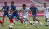Pemain Persikabo 1973 Muhammad Dimas Drajat (kedua kanan) berusaha melewati pemain Arema FC pada pertandingan Piala Menpora di Stadion Manahan, Solo, Jawa Tengah, Ahad (21/3/2021). (FOTO : Antara/Mohammad Ayudha)