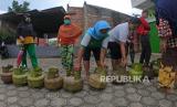 Warga antre untuk membeli gas elpiji 3 kilogram, di Pangkalan Gas Jalan Lingkar Barat, Mayang Mangurai, Jambi, Senin (22/3/2021). Warga mengaku terpaksa antre seminggu sekali di tempat pangkalan gas untuk mendapatkan gas 3 kilogram seharga Rp18 ribu per tabung akibat tingginya harga jual gas di tempat penjualan lain yang mencapai Rp30 ribu per tabung. (FOTO : ANTARA/Wahdi Septiawan)