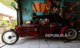 Herman (35) pemilik bengkel pembuatan replika mobil veteran atau mobil kuno memasangkan atap mobil yang siap jual di Pondok Aren, Tangerang Selatan, Banten, Senin (22/3/2021). Mobil yang nyaris sama dengan aslinya ini menggunakan mesin ATV, yang dijual dengan harga Rp50 juta hingga Rp100 juta tergantung model dan tingkat keunikan mobil. (FOTO : ANTARA/Muhammad Iqbal)