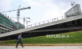 Seorang warga melintas di depan pembangunan proyek revitalisasi Taman Ismail Marzuki (TIM), Cikini, Jakarta, Senin (22/3/2021). Menurut PT Jakarta Propertindo (Jakpro), pembangunan tahap I revitalisasi kawasan TIM mencapai 75 persen dengan progres pembangunan 87 minggu, sementara tahap II masih 1 persen dengan tahap pengerjaan enam minggu. (FOTO : ANTARA/M Risyal Hidayat)