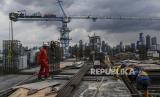 REPUBLIKA.CO.ID, JAKARTA -- Sejumlah pekerja menyelesaikan pembangunan proyek revitalisasi Taman Ismail Marzuki (TIM), Cikini, Jakarta, Senin (22/3). Menurut PT Jakarta Propertindo (Jakpro), pembangunan tahap I revitalisasi kawasan TIM mencapai 75 persen dengan progres pembangunan 87 minggu, sementara tahap II masih 1 persen dengan tahap pengerjaan enam minggu.