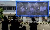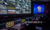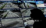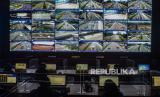 Petugas memantau layar yang menampilkan suasana arus lalu lintas yang terekam kamera tilang elektronik atau Electronic Traffic Law Enforcment (ETLE) di Gedung NTMC Korlantas Polri, Jakarta, Selasa (23/3).Program ETLE Nasional resmi diberlakukan yang tersebar 244 titik di 12 wilayah Polda di Indonesia sebagai upaya peningkatan program keamanan, keselamatan, ketertiban dan kelancaran berlalu lintas. (FOTO : Republika/Putra M. Akbar)