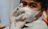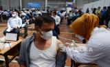 Dirut Bank BJB Yuddy Renaldi mengikuti vaksinasi massal yang diikuti oleh pegawai Bank BJB, direksi Bank BJB, masyarakat dan Organisasi Perangkat Daerah (OPD), di GOR Kantor Pusat Bank BJB, Jalan Naripan, Kota Bandung, Selasa (23/3). Kegiatan tersebut untuk mendukung program pemerintah mensukseskan vaksinasi khususnya di Jawa Barat. (FOTO : Edi Yusuf/Republika)