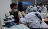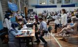 Peserta vaksinasi menunggu di ruang observasi saat vaksinasi massal Covid-19 yang diikuti oleh ribuan pegawai Bank BJB, direksi Bank BJB, masyarakat dan Organisasi Perangkat Daerah (OPD), di Gedung BJB Sport, Jalan Naripan, Kota Bandung, Selasa (23/3). Vaksinasi tersebut di antaranya bertujuan mendukung pemerintah melaksanakan program vaksinasi nasional dan optimalisasi dalam memberikan pelayanan kepada masyarakat dan nasabah. (FOTO : Edi Yusuf/Republika)