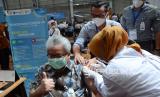 Vaksinasi massal yang diikuti oleh pegawai Bank BJB, direksi Bank BJB, masyarakat dan Organisasi Perangkat Daerah (OPD), di GOR Kantor Pusat Bank BJB, Jalan Naripan, Kota Bandung, Selasa (23/3). Kegiatan tersebut untuk mendukung program pemerintah mensukseskan vaksinasi khususnya di Jawa Barat. (FOTO : Edi Yusuf/Republika)